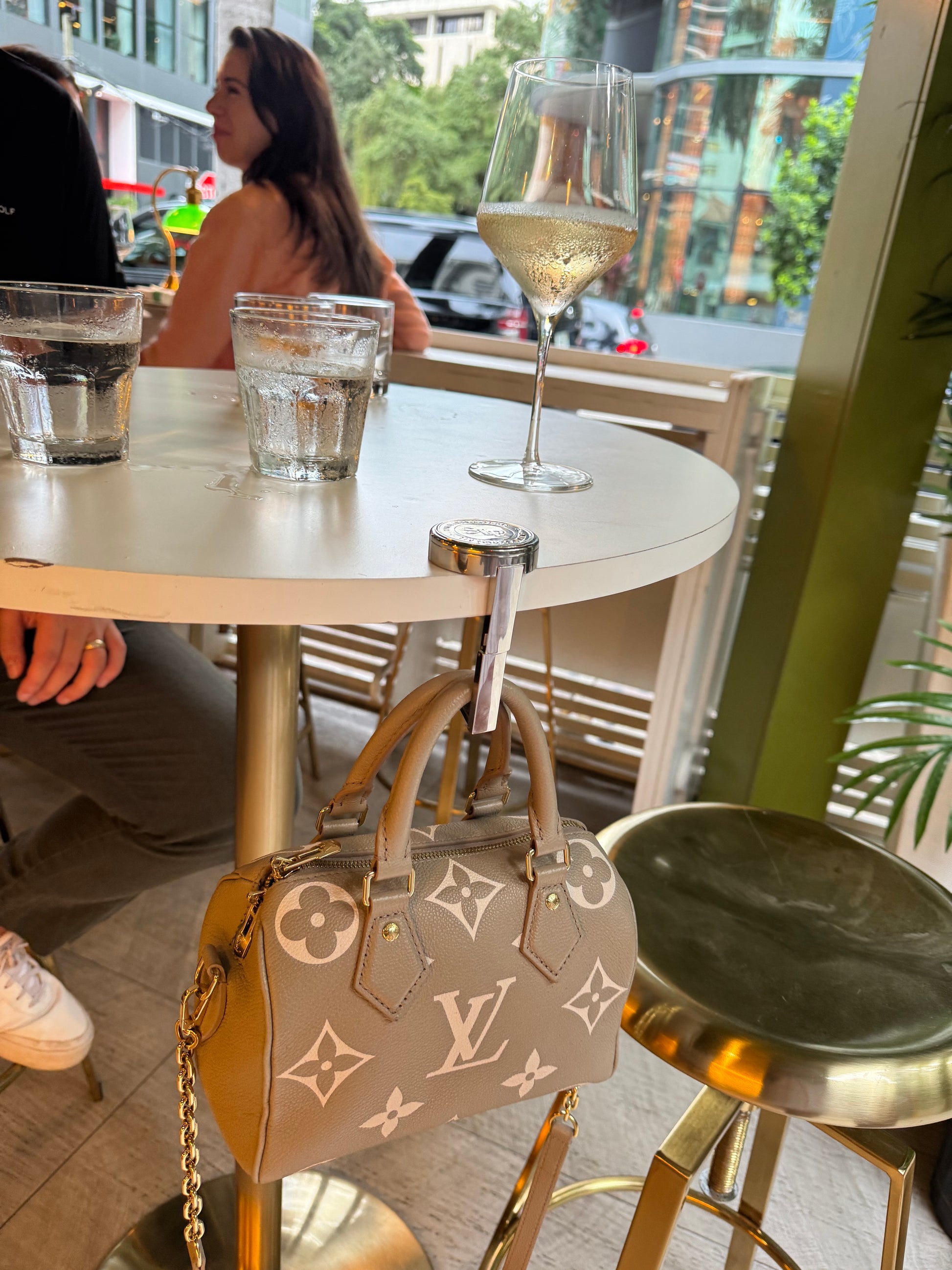 Elevate your accessory collection with this elegant purse hook, designed to keep your handbag secure and within reach. Crafted for both style and practicality, it seamlessly blends sophistication with convenience, making it an essential companion for any outing.